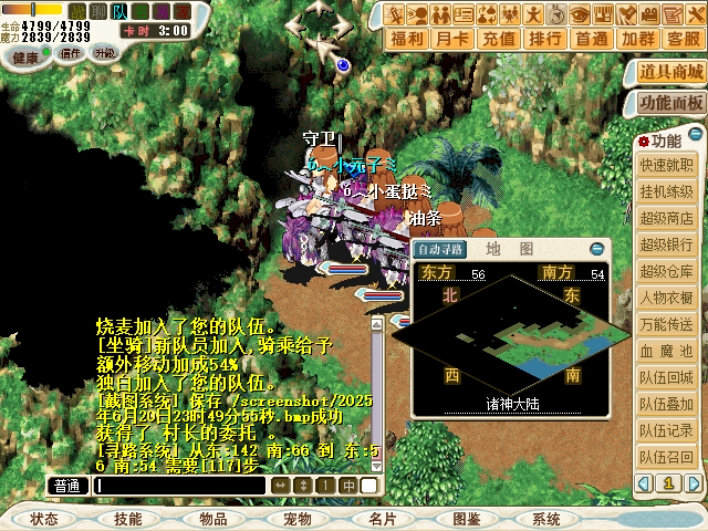然后出村先从左上到路口然后左下 走到诸神大陆 56.53 与守卫对话进入洞窟