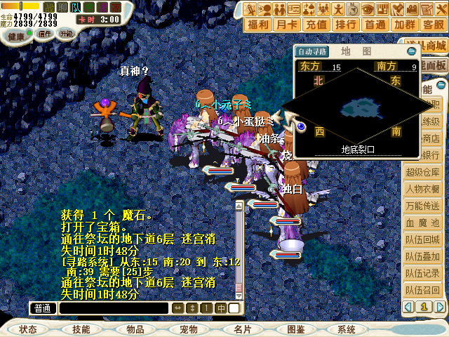 PS:真神120级 4小怪100级 戴靴怪魔法强力 300+超强250+ 黄金螃蟹乾坤1000+ 连击250+ 小怪吃咒术 目测小怪血量15000 BOSS 2W 群攻带走